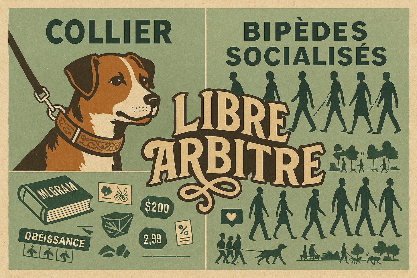Nous autres, bipèdes socialisés, on a remplacé le collier par du libre arbitre…