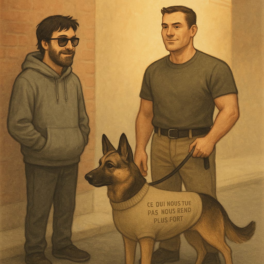 avec un gros berger allemand badass. 🐕🦺
